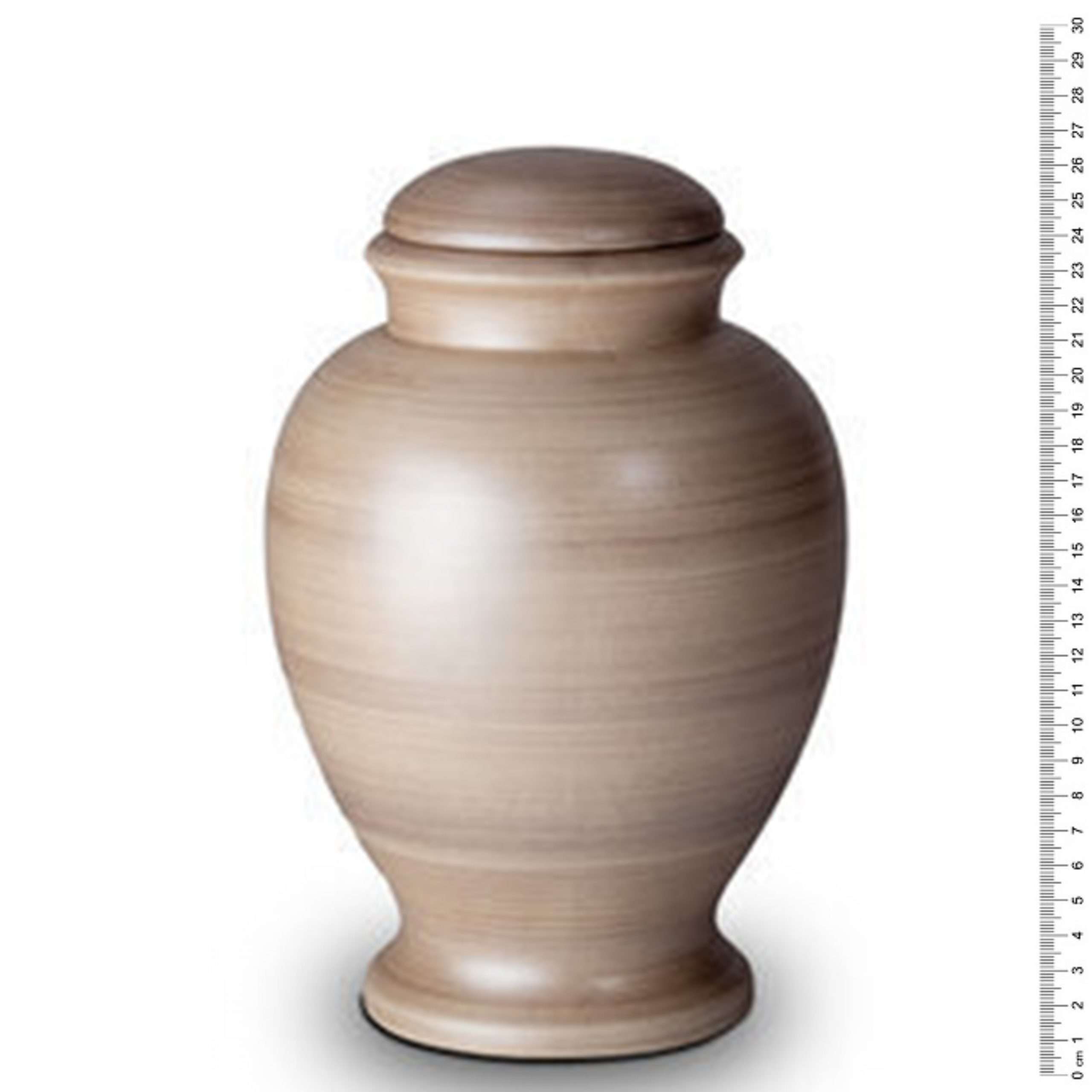 Wij verkopen deze ecologische urn, vervaardigd van biologisch afbreekbare elementen in grijsbruin en kunnen deze niet voor u voorzien van een gravure. Bent u zoekende naar een urn met een literinhoud van 3,40 liter, die binnen kan worden neergezet, dan is dit eventueel de urn waar u naar op zoek bent. Deze asurn in de vorm van een traditionele urn heeft een hoogte van 28 centimeter en misstaat in geen enkel interieur. Heeft u belangstelling in deze urn, houdt u dan rekening met 3-5 werkdagen levertijd.