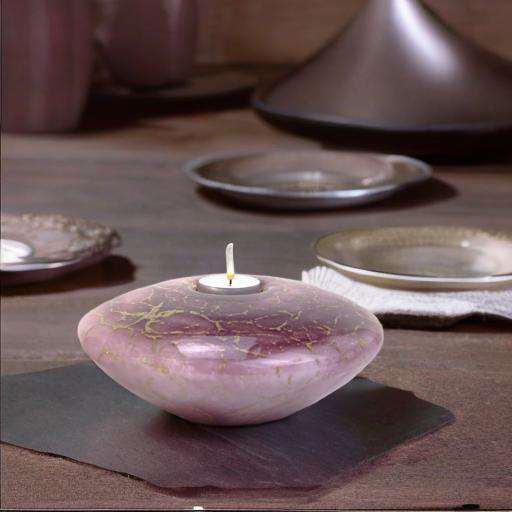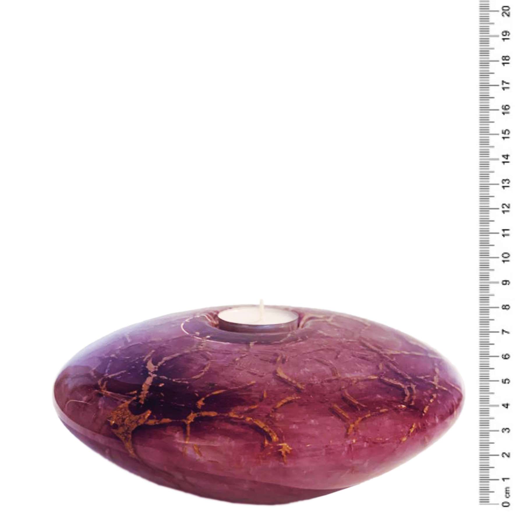 Glazen urn – Disk met waxinelichtje paars met bladgoud groot – 1 Liter