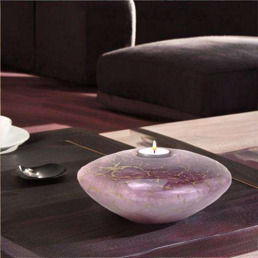 Kristalglazen disk paars goud met ruimte voor waxinelicht en as van een overleden dierbare.