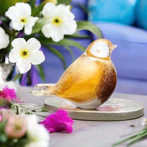 Kristalglazen vogel in bruin geel met ruimte voor as van een overleden dierbare.