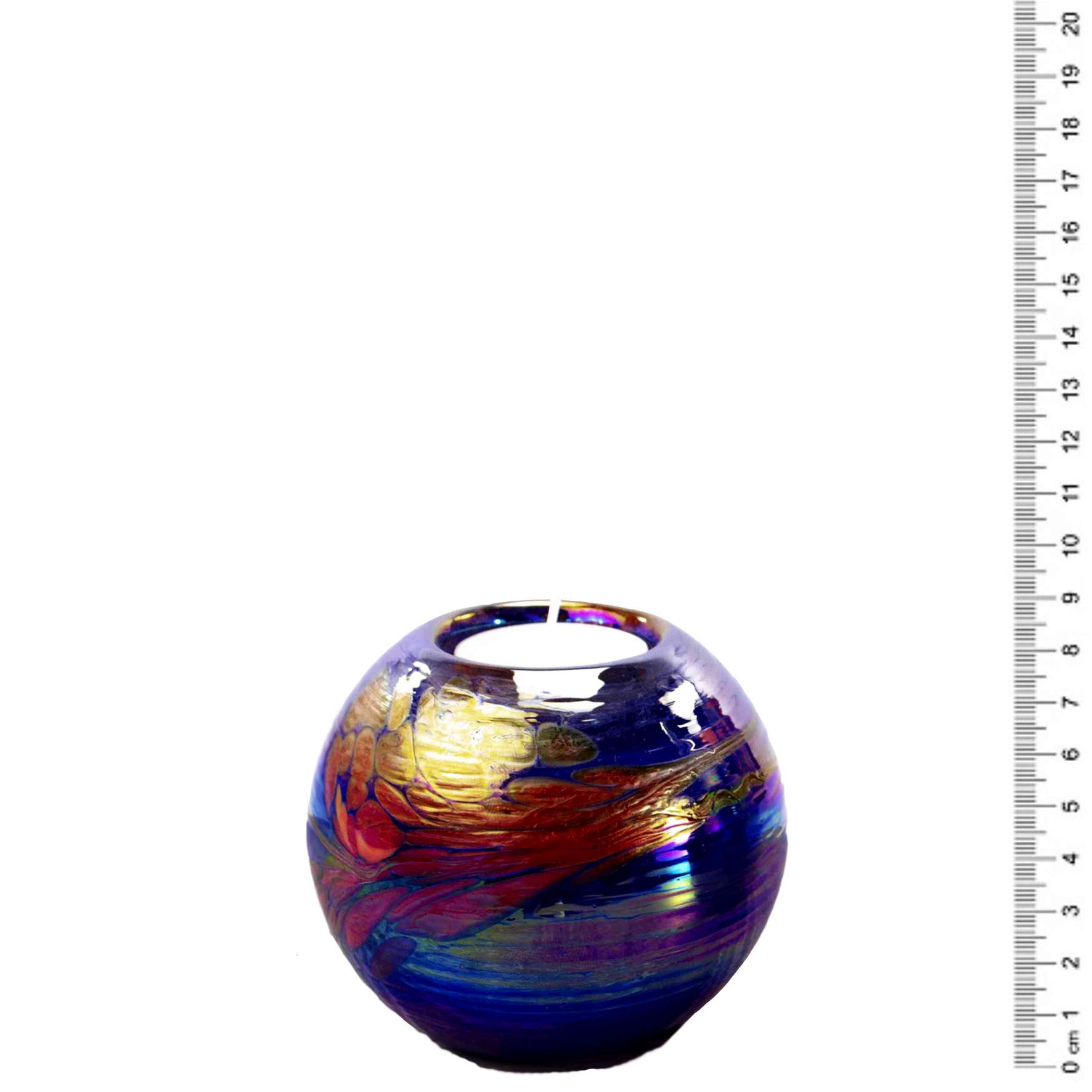 Deze bladgouden asurn in de kleur blauw is geproduceerd van glas en kan helaas niet worden gegraveerd. Met een inhoud van 0,20 liter is deze fraaie urn ideaal wanneer u deze urn binnen wilt neerzetten. Deze urn in de vorm van een bol heeft een hoogte van 9 cm en een breedte van 9 cm en misstaat in geen enkel huis. Wij kunnen deze urn in plusminus 3 werkdagen leveren.