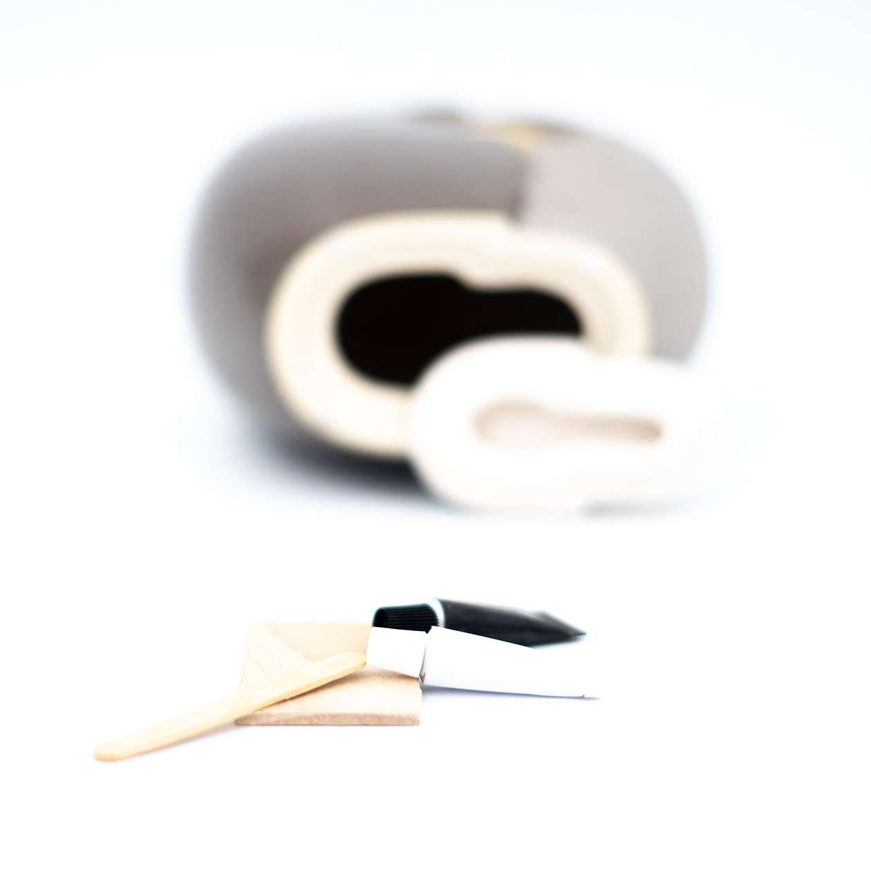 De kunstenaars geven met deze klei vorm aan de urn, die vervolgens bedekt wordt met verschillende kleuren emaille. Het eindresultaat is een uniek product, voorzien van een kleurrijk karakter.