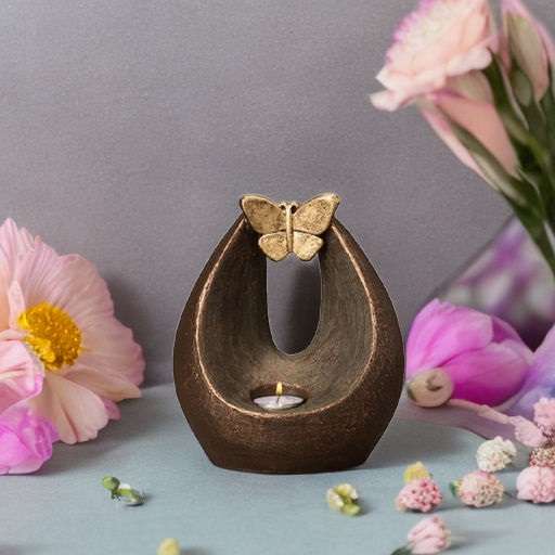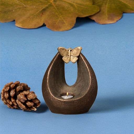 Deze schitterende asurn is gemaakt van keramiek en kan door ons worden gegraveerd, deze urn in de vorm van vlinder wordt geleverd in het brons. Deze urn is geschikt voor binnen en is leverbaar in 1 liter. Met een hoogte van 23 cm en een breedte van 17 cm misstaat deze asurn in de vorm van waxinelicht in geen enkel interieur. Wij kunnen deze urn in circa 3-4 weken leveren.