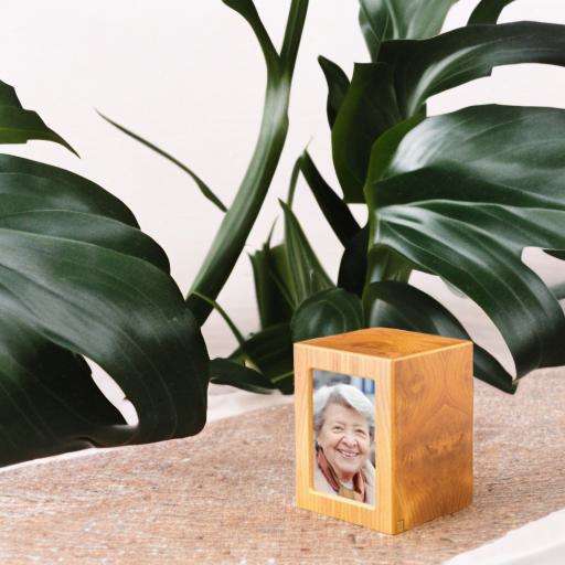 Deze eersteklas urn is gemaakt van hout en kan door ons worden gegraveerd, deze urn in de vorm van kubus wordt aangeboden in licht eiken kleur. Met een inhoud van 0,3 liter is deze prachtige urn perfect wanneer u deze urn binnen wilt neerzetten. Deze asurn heeft de vorm van een kubus en is ruwweg 13 cm hoog en 10 cm breed. Wij kunnen deze urn in plusminus 3 werkdagen leveren.